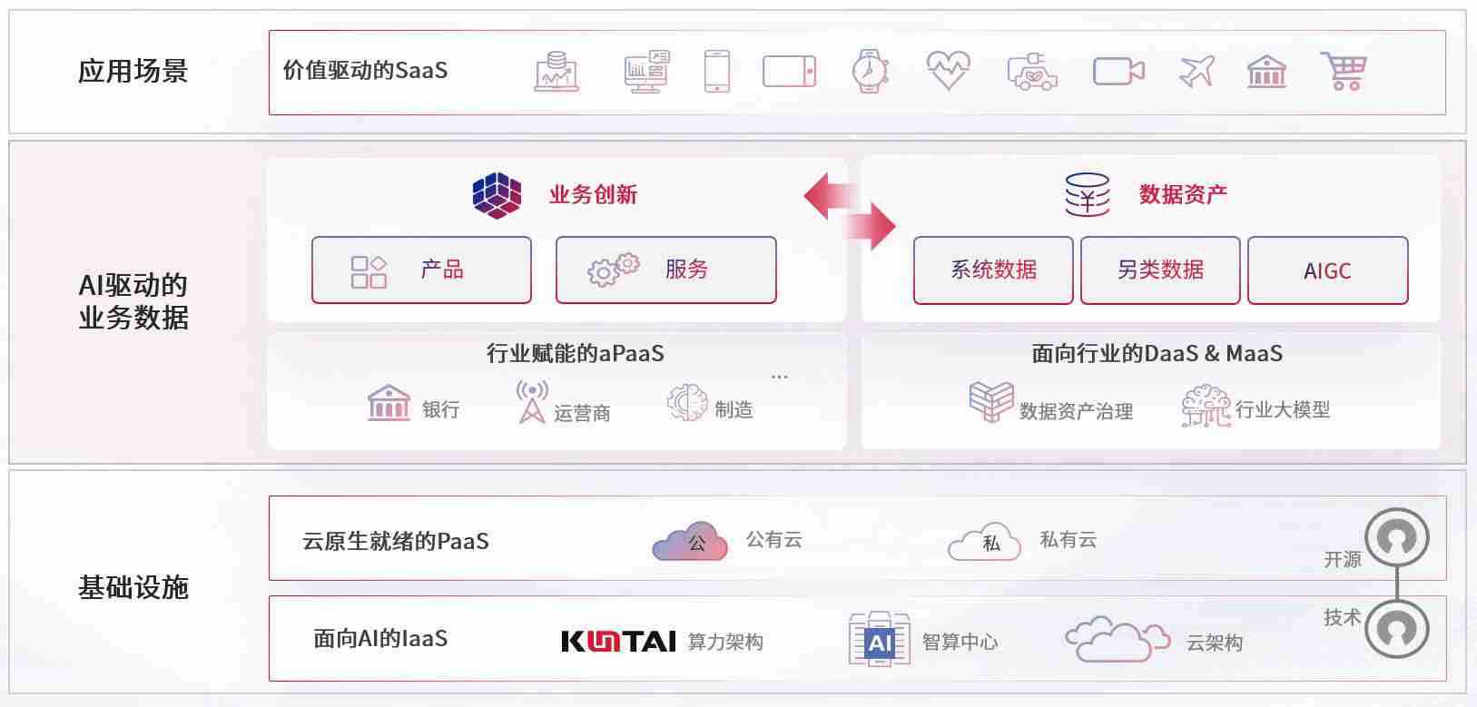 数字时代,,围绕企业数字化转型的关键要素,,,,南宫娱乐数码开创性的提出数云融合战略和技术体系框架,,,,着力在云原生、、、、数字原生、、、、AI原生和信创产业上架构产品和服务能力,,,为处在不同数字化转型阶段的快消零售、、、、汽车、、、金融、、医疗、、、、政企、、教育、、、运营商等行业客户提供泛在的敏捷IT能力和融合的数据驱动能力,,,构建跨界融合创新的数字业务场景和新业务模式,,助力企业级客户建立面向未来的核心能力和竞争优势,,,,全面推动社会的数字化、、、智能化转型升级。。。