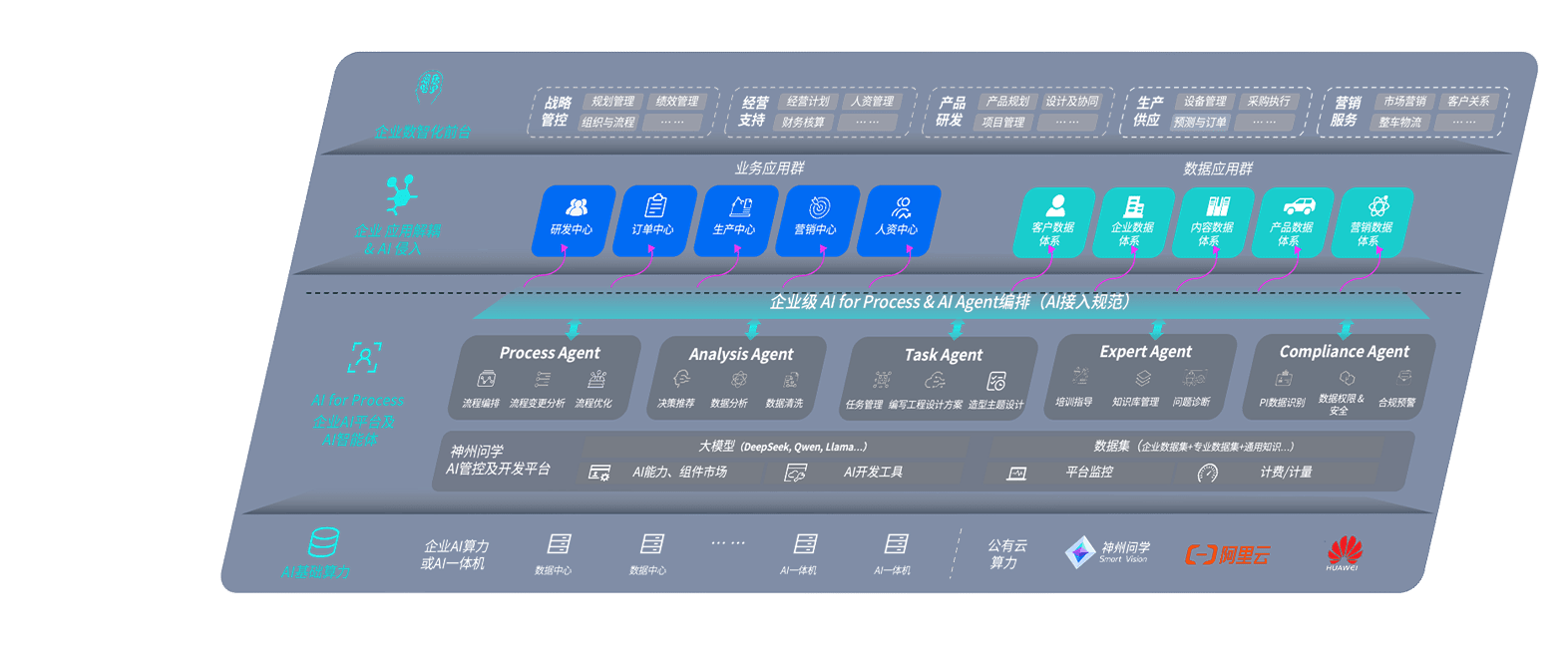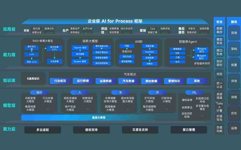 南宫娱乐问学智车解决方案是一套基于AI技术的汽车行业智能化系统,,,,覆盖从底层算力到顶层AI应用的全栈方案。。方案由算力层、、、模型层和应用层组成:算力层,,,方案支持多种一体机配置,,,具备云端灵活部署、、、、多云适配以及动态优化计算资源的能力;模型层,,南宫娱乐问学平台版提供了企业级AI应用一站式构建与管理平台,,,,支持基于后训练强化技术的汽车企业专属模型的训练、、、评测和运营;应用层,,,南宫娱乐问学DeepSeek版提供包括超级员工、、智能招采、、智能营销、、、、智能客服、、AI for BI等一系列解决方案,,,可助力汽车行业实现数字化转型,,让管理更智能、、、、响应更敏捷。。。